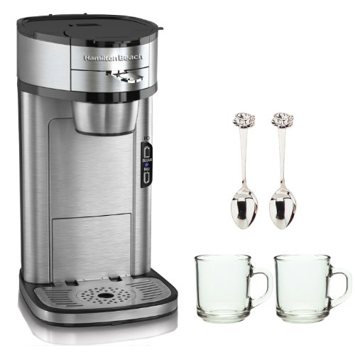 | Hamilton Beach Single Serve Scoop Coffee Maker + 2 Piece 10 oz. ARC Handy Glass Coffe Mug + 2 Piece 4.5\" Demi Spoon |