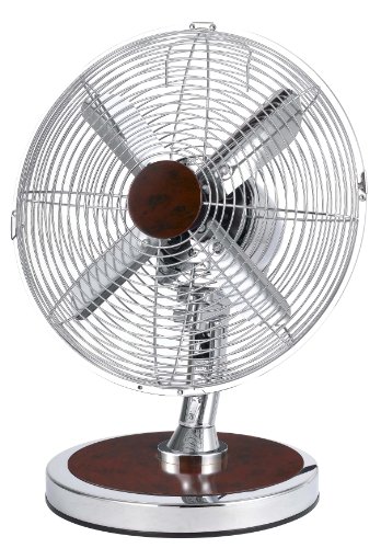 Optimus F-8121 12-Inch Oscillating 3-Speed Fashion Table Fan, Chrome with Red Wood Accent Details :
