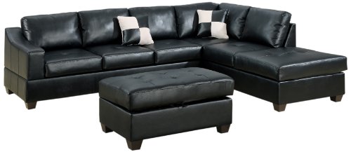 Bobkona Jaxson Collection 3-Piece Bonded Leather Match Reversible Sectional Sofa with Matching Ottoman, Black Details :